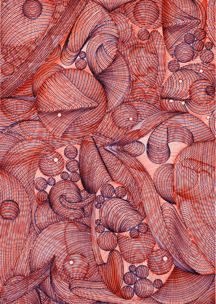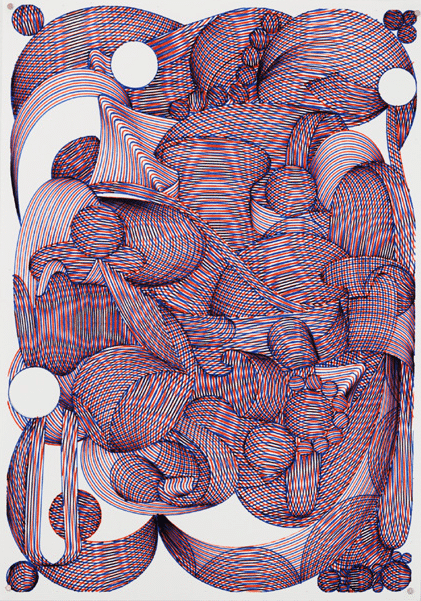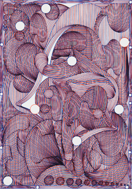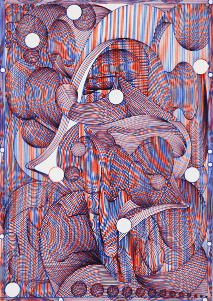 L’exposition propose une immersion dans l’univers singulier de Kamil, qui explore la tension entre image numérique et geste manuel. L’artiste traduit des éléments visuels issus du digital en formes dessinées à la main, brouillant les frontières entre abstraction et illusion, impression et geste.